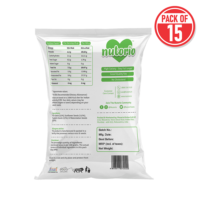 A nutritional mix of flax seeds, sunflower seeds, pumpkin seeds and watermelon seeds! Best for workout lovers and those who believe in eating healthy and right – all the time!